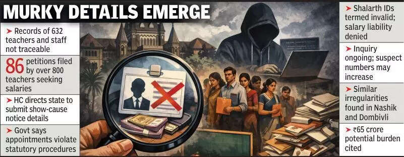 Nagpur: The Maharashtra govt on Tuesday informed the Nagpur bench of Bombay high court that more than 99% of appointments linked to the alleged Shalarth ID scam are under suspicion. Govt stated that only five teachers’ valid records were found, while documents for 632 teachers and non-teaching staff remain untraceable.The affidavit filed by the Deputy Director of Education through senior counsel and govt pleader Deven Chauhan, assisted by additional govt pleader Sangita Jachak, raised serious questions over the legitimacy of these appointments.The matter was heard by a division bench of Justices Mukulika Jawalkar and Nandesh Deshpande. The bench was dealing with around 84 petitions filed by more than 800 teachers seeking release of their stalled salaries. The court adjourned the matter to April 2 and directed the state to submit a detailed chart of show-cause notices issued to those allegedly linked to the Shalarth ID irregularities.The govt maintained that the appointments under investigation were not made in accordance with prescribed statutory procedures, and that mandatory requirements under service rules and govt resolutions were not followed. It further submitted that Shalarth IDs generated based on such appointments are “invalid”. “Since the appointments are not legally established, govt has no authority to disburse salary,” the affidavit stated.Detailing the findings of the inquiry, the state said probe revealed large-scale irregularities in generation of Shalarth IDs, including approvals issued without official sanctions or records. The affidavit noted that such IDs were created “without any valid offline orders or approval proposals,” often in collusion at institutional levels, bypassing established procedures.The state further told the court that the inquiry is ongoing and that the number of suspect appointments could go beyond 632. It added that responsibility, if any, for payment of salaries in such cases would lie with the respective school managements, not the govt.Speaking on the developments, Jachak told TOI that similar patterns of irregularities have been detected in other parts of the state. “A similar scam was noticed at Nashik and Dombivli, and SITs have been constituted to trace the culprits,” she said.The state earlier challenged an interim order of Nagpur bench, directing payment of salaries to around 600 teachers, before the Supreme Court. The state argued that disbursing salaries during an ongoing probe could impose a financial burden of 65 crore on the exchequer.The delay in implementing the interim order led to the filing of around 40 contempt petitions. The apex court has since directed that all related petitions be decided within four months.The dispute originates from approximately 86 writ petitions challenging a departmental note dated May 3, 2025, and a joint communication issued on April 29, 2025, by education authorities, which sought verification of appointment records of teachers linked to the Shalarth system used for salary processing in govt-aided schools across Maharashtra.