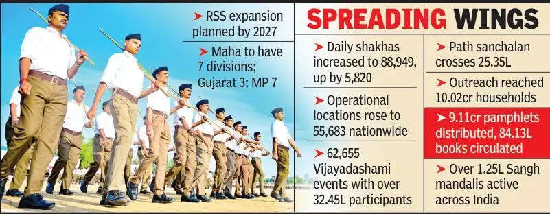Nagpur: The Rashtriya Swayamsevak Sangh (RSS) unveiled a major restructuring plan to expand its administrative framework from 46 ‘prants’ (provinces) to around 86 ‘sambhags’ (divisions) across India, marking a significant shift aimed at decentralising operations and strengthening grassroots engagement in its centenary year.The transition, expected by March 2027, is intended to create smaller, more manageable administrative units. “The move aims to improve local coordination and expedite decision-making,” said Vidarbha prant karyavah Atul Moghe.Speaking alongside Vidarbha prant sanghchalak Deepak Tamshettiwar, Nagpur mahanagar secretary Ravindra Bokare, and publicity in-charge Brajesh Manas, Moghe said Maharashtra’s structure will expand from four to seven ‘sambhags’, while Gujarat will increase from two to three and Madhya Pradesh from three to seven. The next Akhil Bharatiya Pratinidhi Sabha is expected to be held in Nagpur, where the new framework may be finalised along with further organisational changes.The restructuring follows a detailed review at the recent Akhil Bharatiya Pratinidhi Sabha at Samalkha, Haryana. Presenting the data, Moghe said daily ‘shakhas’ increased by 5,820, rising from 83,129 to 88,949, while operational locations grew from 51,740 to 55,683.“The three-day meeting from March 13-15 recorded 1,438 attendees, reflecting a participation rate of about 96%,” Moghe said, adding the annual report presented by general secretary Dattatreya Hosabale reviewed nationwide activities and assessed the current national and global context.The leadership, including Mohan Bhagwat, highlighted extensive nationwide engagements and emphasised expanding activities in remote regions over next five years, with a focus on improving quality of organisational work.Large-scale public engagement remained central to the expansion. Vijayadashami programmes numbered 62,655 nationwide, drawing participation of over 27 lakh youth and 5.26 lakh children, taking total attendance beyond 32.45 lakh. Path sanchalan events recorded participation exceeding 25.35 lakh.